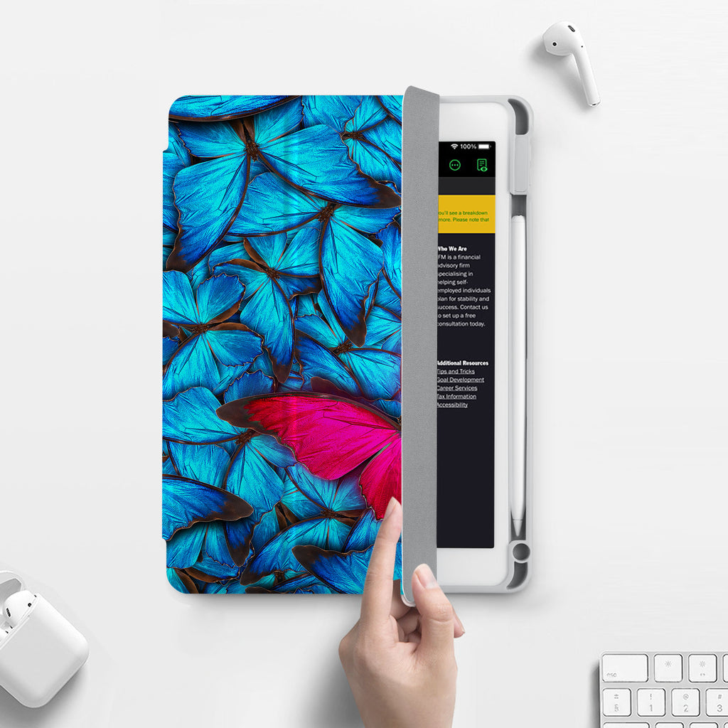 Vista Case iPad Premium Case with Butterfly Design has an integrated holder for Apple Pencil so you never have to leave your extra tech behind. - swap