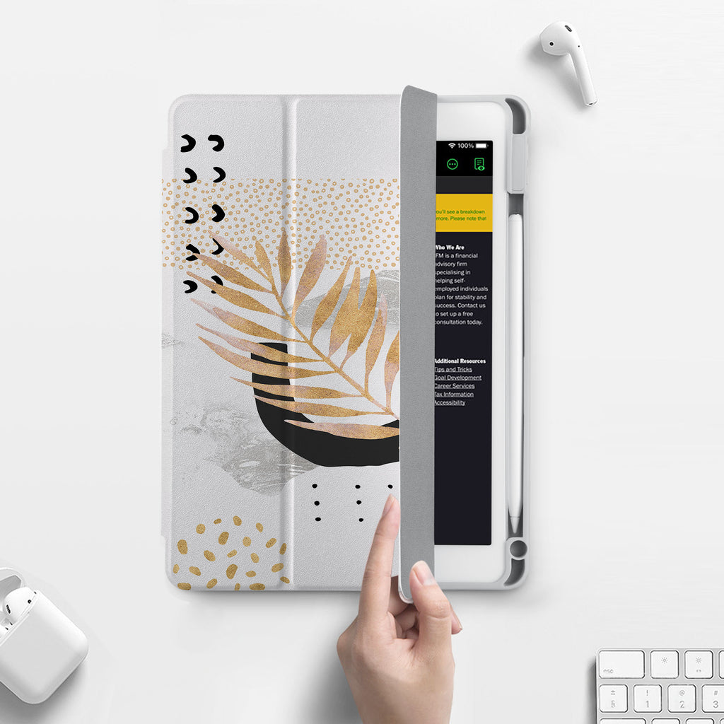 Vista Case iPad Premium Case with Marble Flower Design has an integrated holder for Apple Pencil so you never have to leave your extra tech behind. - swap