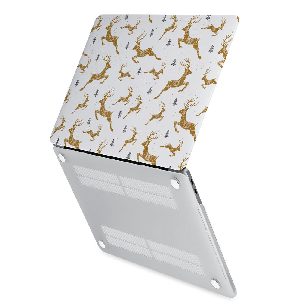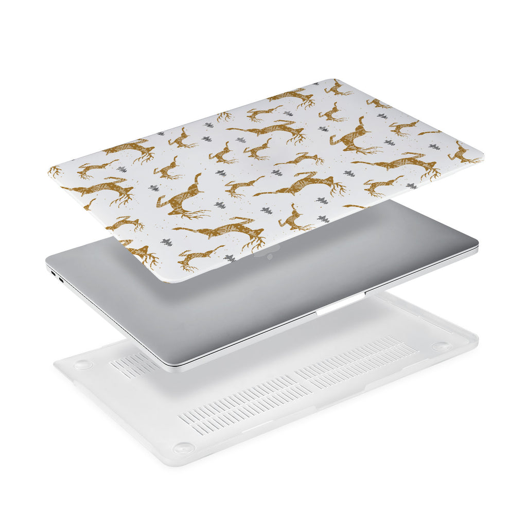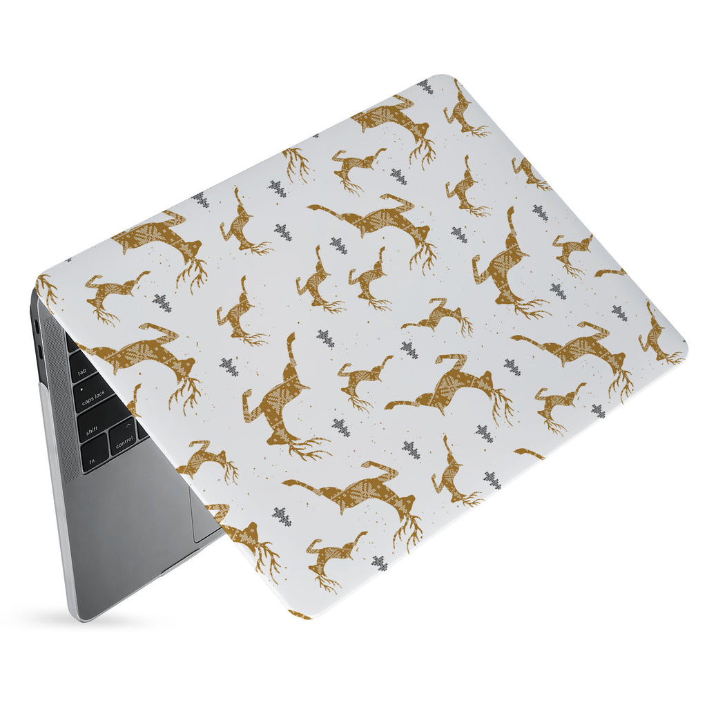 " Exotic elegance abounds in this stunning Personalized Macbook Case. Graceful deers, and pine trees are repeated in the pattern, their dainty details brought to life in the soft strokes of a brush. "