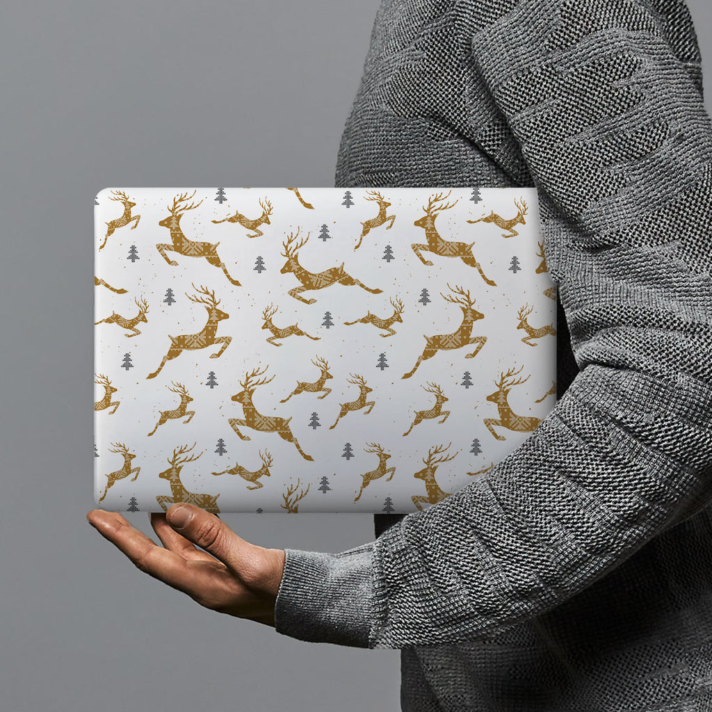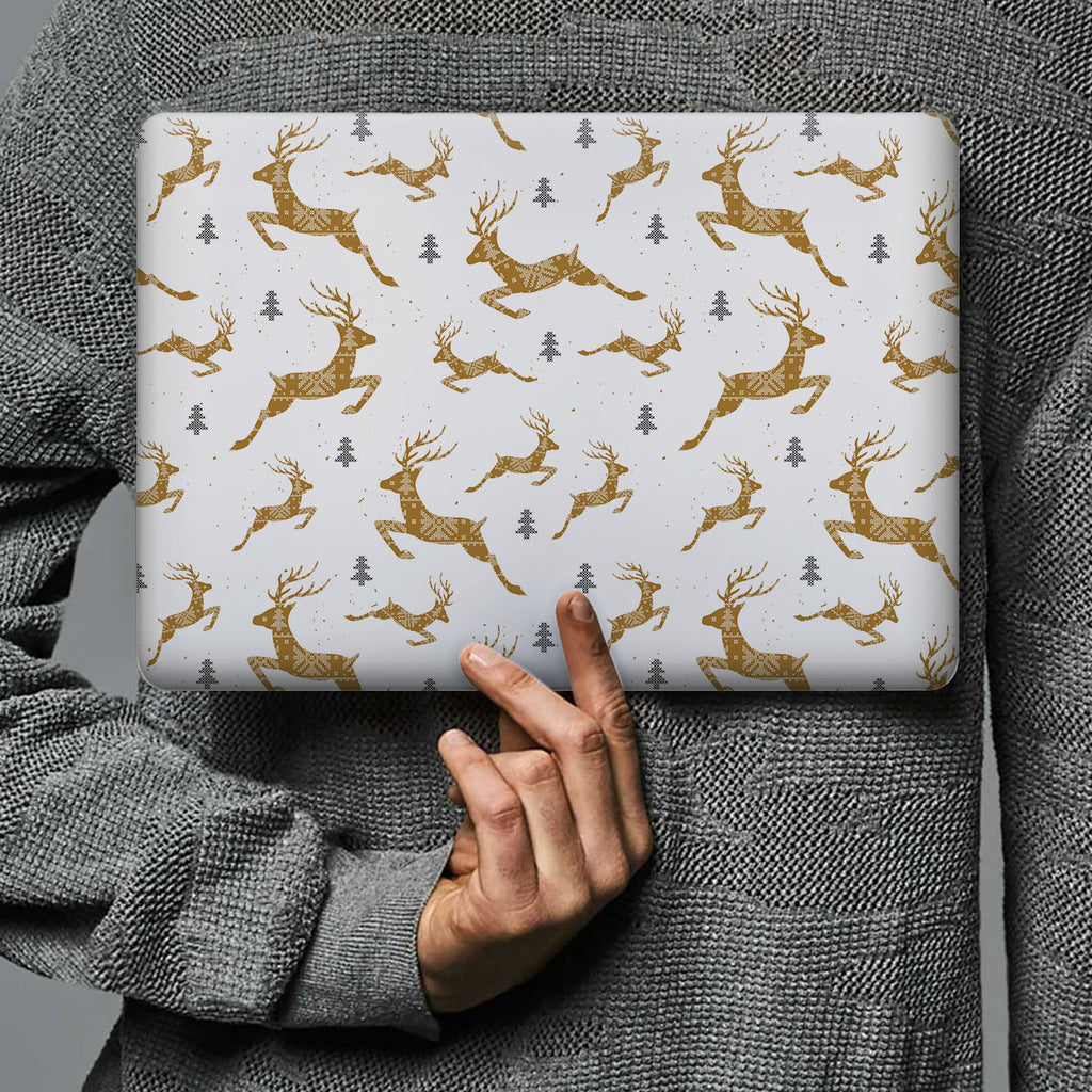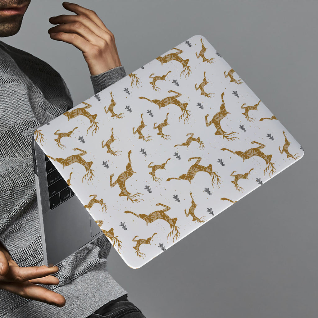 " Exotic elegance abounds in this stunning Personalized Macbook Case. Graceful deers, and pine trees are repeated in the pattern, their dainty details brought to life in the soft strokes of a brush. "