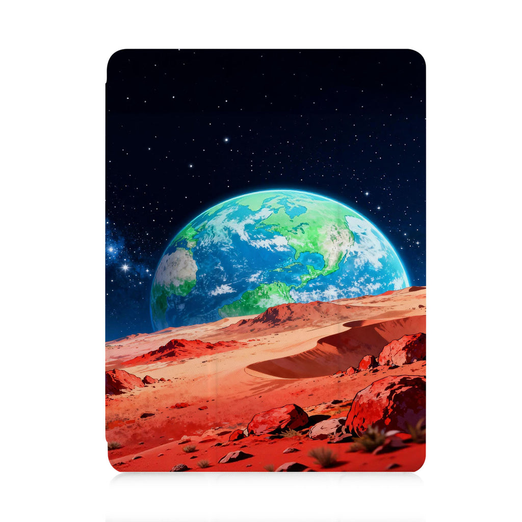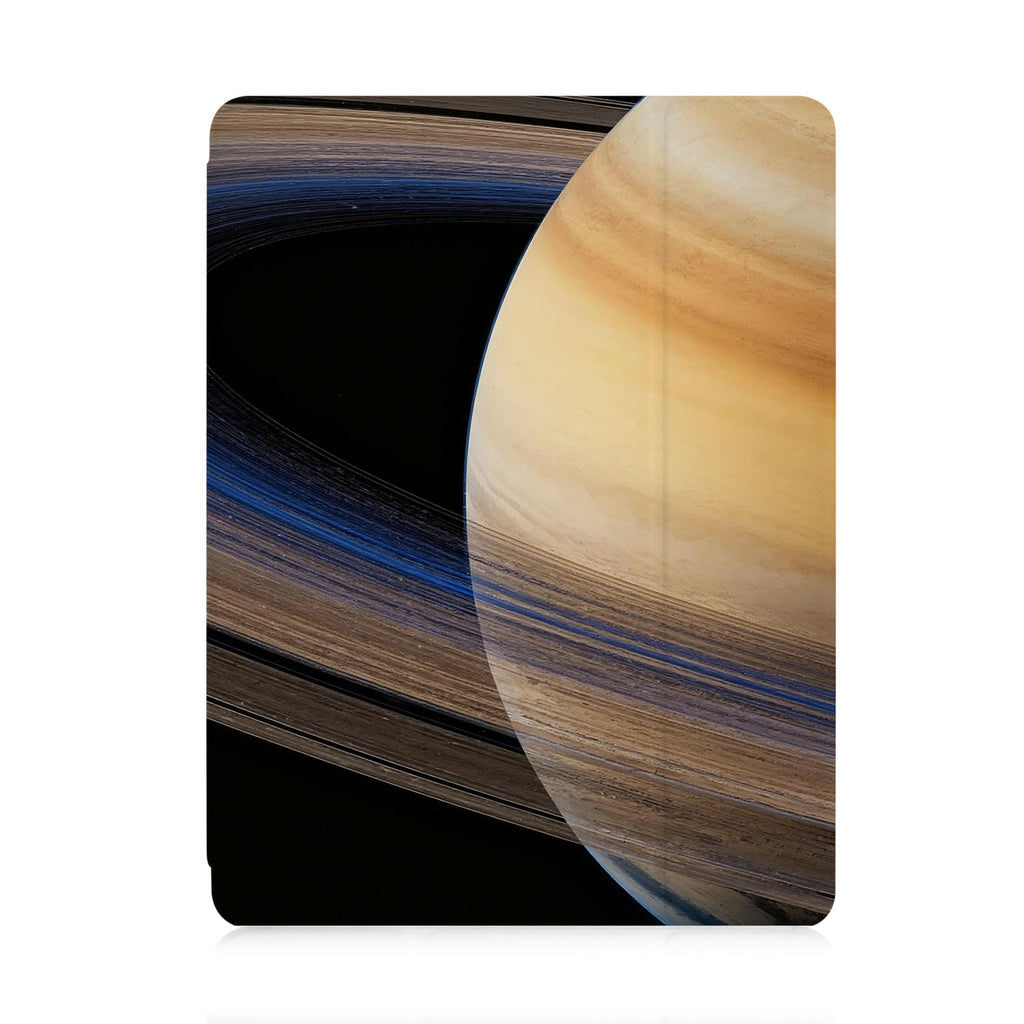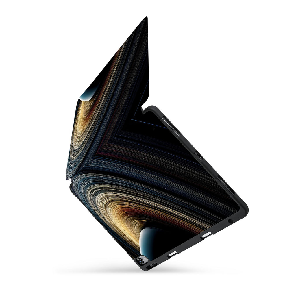 front back and stand view of personalized iPad case with pencil holder and Universe design - swap