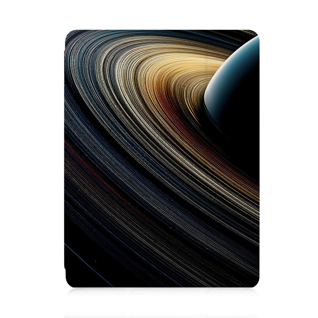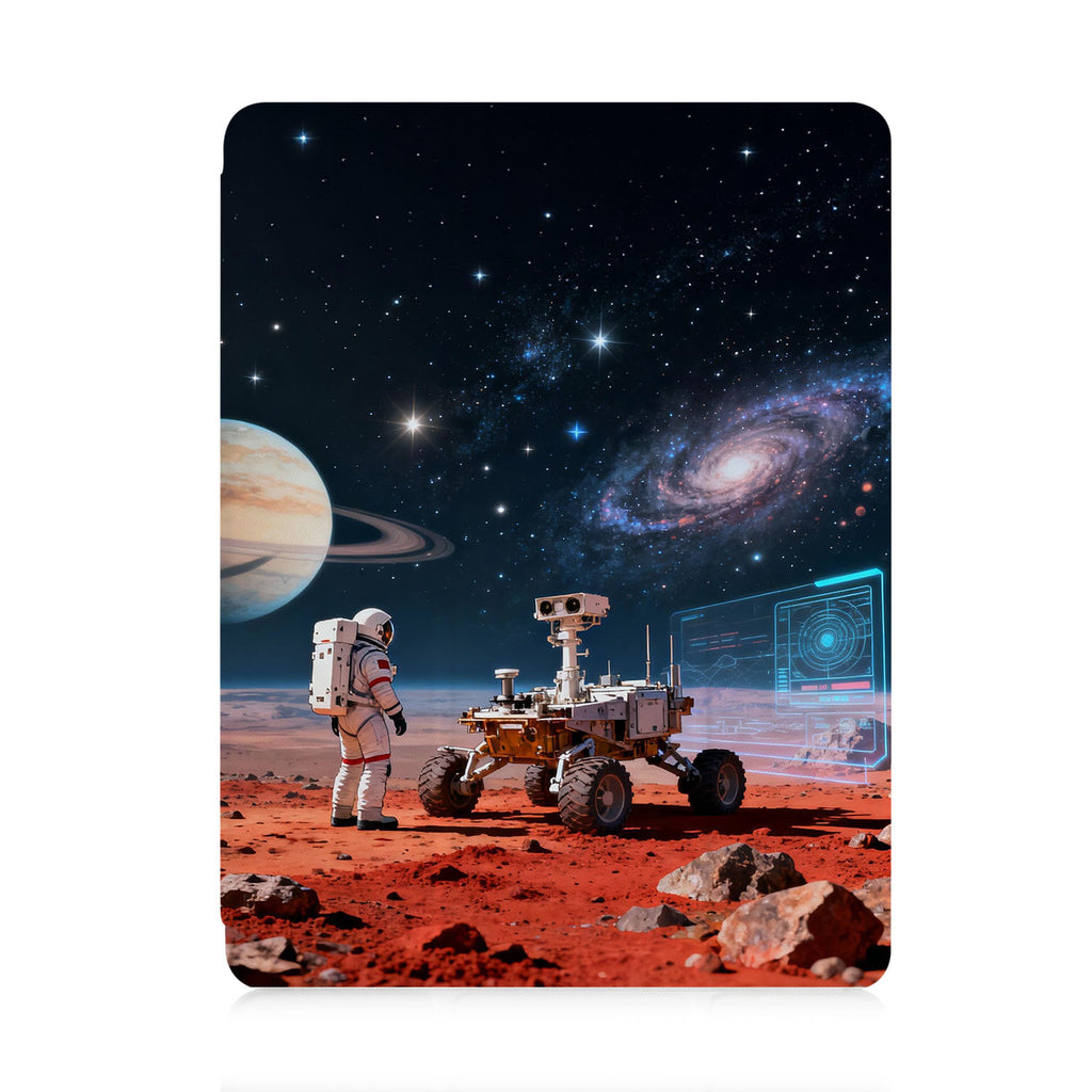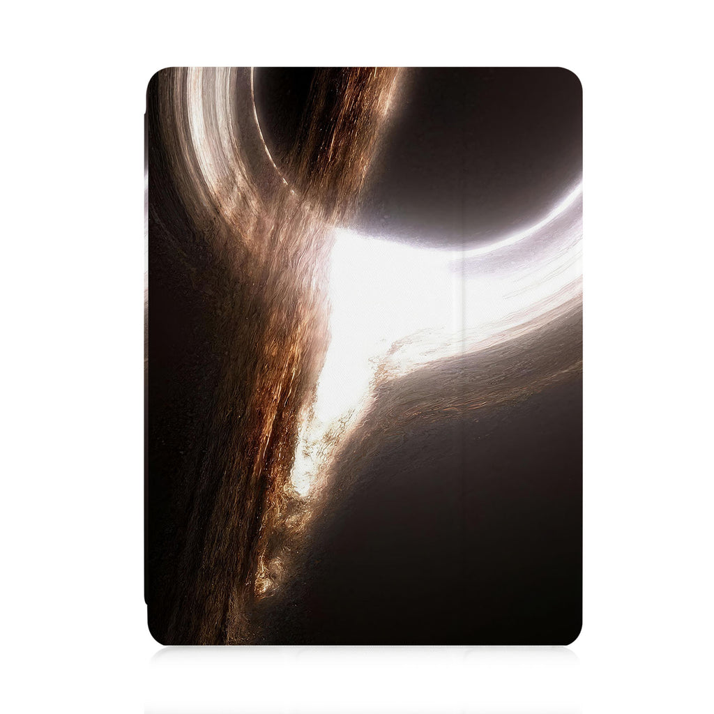 front back and stand view of personalized iPad case with pencil holder and Universe design - swap