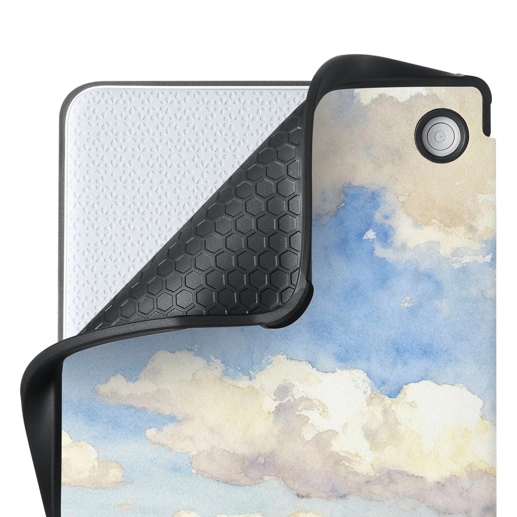 The case has a grainy texture on it that I wasn’t aware of from the website and I really don’t like the feel. The front cover doesn’t fit snuggly against the kobo and presses down in the middle which I also don’t like. I love the pattern but wouldn’t repurchase.