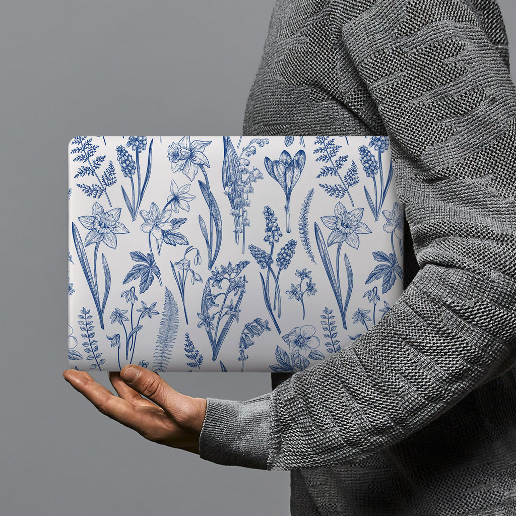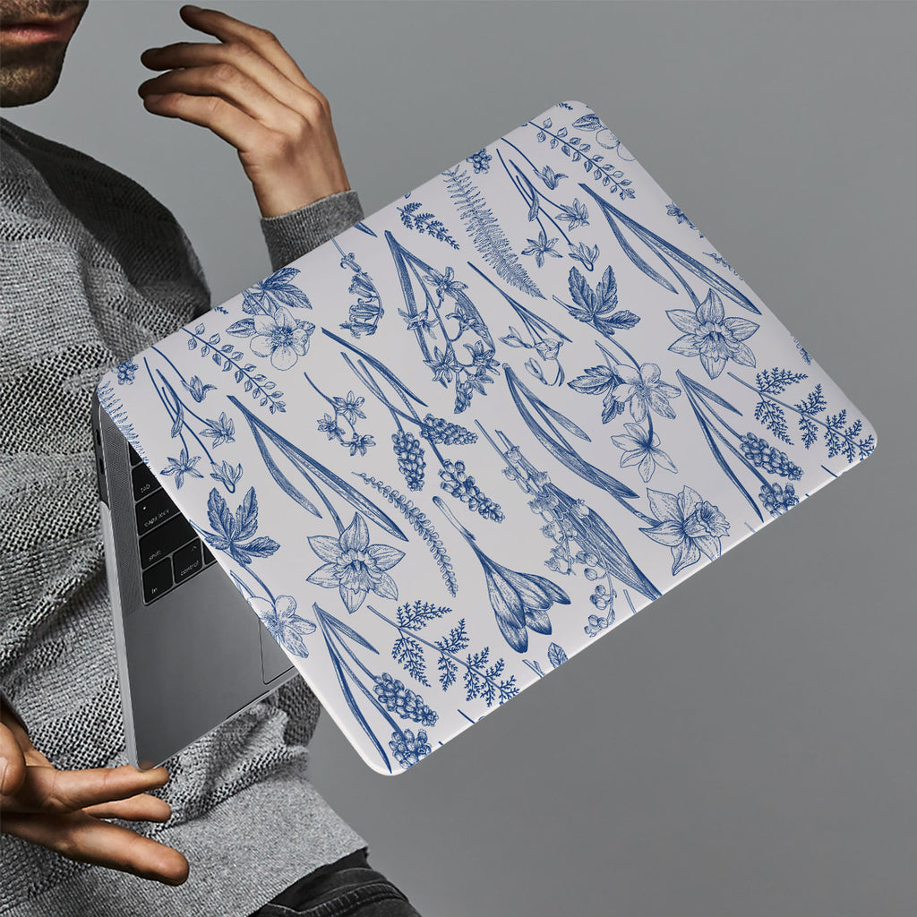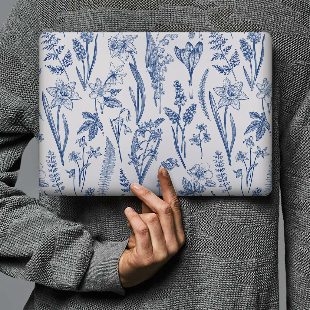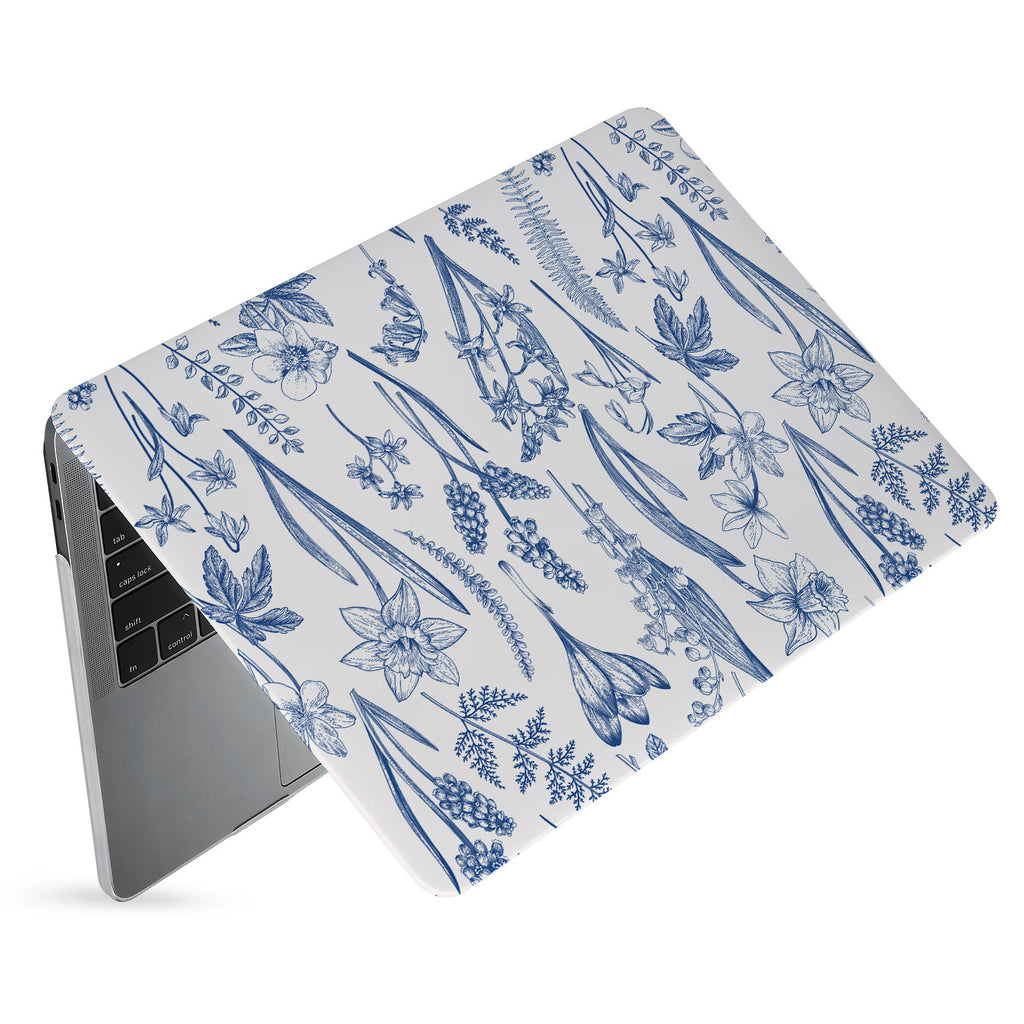 " Like sketches from a naturalist's notebook, these wildflowers are detailed and dainty. Drawn in inky blue, the petals and leaves are depicted in a beautiful repeating pattern. This is an exquisite floral Macbook Case for nature lovers and will provide inspo for dreamers to help them grow and blossom on life's journey. "